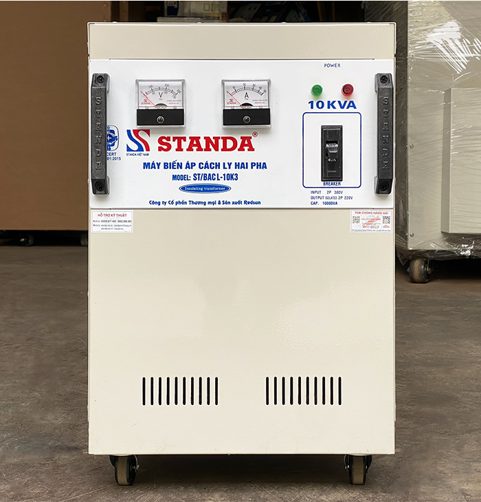 Biến áp cách ly 2 pha lửa 10KVA Standa điện vào 380V ra 220V dây đồng – Thiết bị chống giật trọn đời