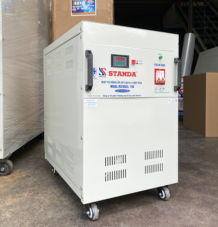 Máy biến áp cách ly STANDA 15KVA điện áp 220V/110V được dùng cho gia đình nhà xưởng, công ty, tiệm rửa xe, trường học, bệnh viện, những nơi có nhiều nguy cơ bị điện giật. Khi dùng biến áp cách ly sẽ đảm bảo an toàn khi sử dụng điện, bảo vệ khỏi các nguy cơ sốc điện phòng chống cháy nổ trong gia đình.