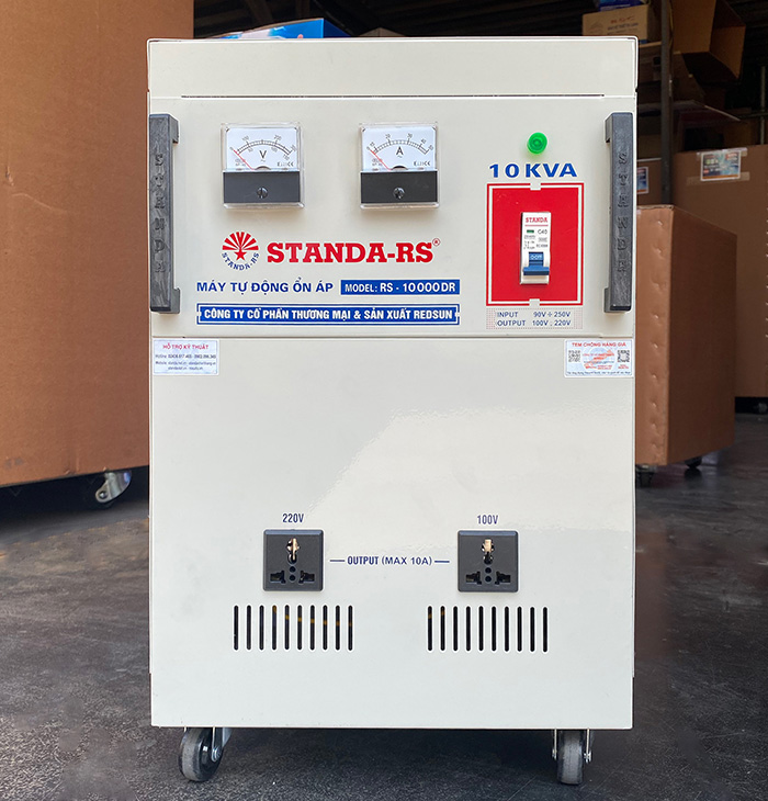 Máy ổn áp tự động đa chức năng Standa 10kva điện áp 50V đến 250V – lựa chọn tuyệt vời cho quý khách khi sử dụng điện với mạng điện lưới một pha. Thiết bị hỗ trợ hiệu quả đối với các máy móc, đồ dùng điện ngoại nhập có thiết kế công suất tiêu hao đặc biệt. Nhờ tích hợp tính năng 6 trong một cộng với những quy chế khắt khe trong việc lựa chọn chất liệu cũng như linh kiện máy móc đồng bộ, đây là máy ổn áp dẫn đầu thị trường hiện nay. Sản phẩm được sản xuất chính hãng tại Công ty Cổ phần Thương mại & Sản xuất Redsun.