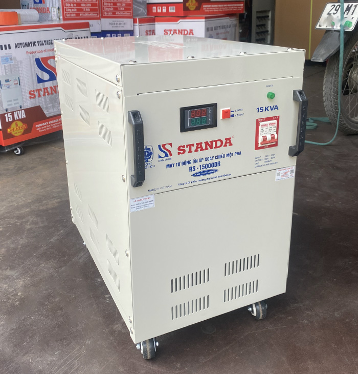 Ổn áp Standa 15KVA điện áp 90KVA. Modem: RS-15000DR loại ổn áp Standa chính hãng đạt tiêu chuẩn xuất khẩu, đã được xuất khẩu qua nhiều nước trên thị trường thế giới. Siêu bền. Đổi mới 1 năm, bảo hành 4 năm. Standa đã nhận được nhiều giải lớn.