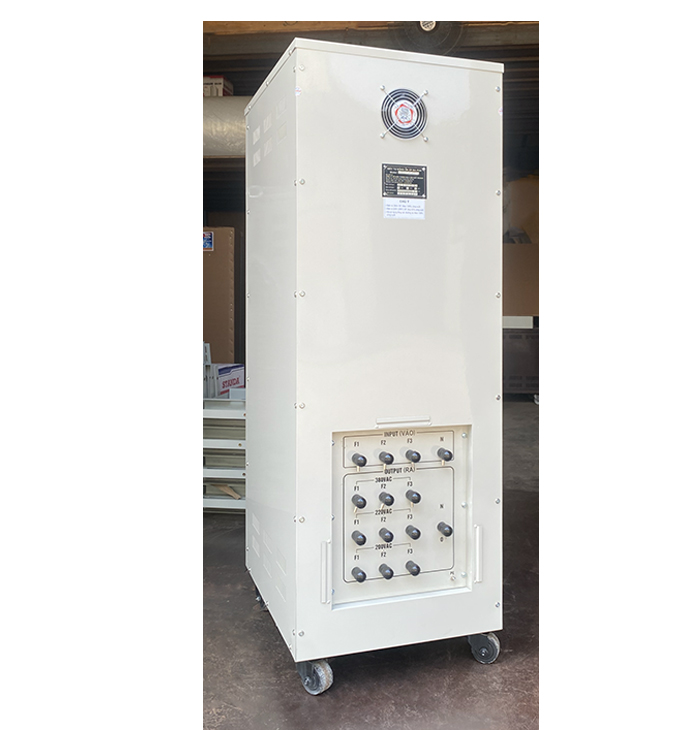 Để ổn định điện áp, bảo vệ các thiết bị máy móc nơi văn phong, công ty, nhà hàng nên sử dụng ổn áp STANDA 60KVA (260V-430V).