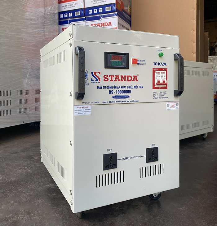 Công suất mạnh mẽ: Với công suất lên đến 10KVA, ổn áp STANDA có thể đáp ứng nhu cầu sử dụng điện của các thiết bị điện tử lớn trong gia đình và văn phòng.